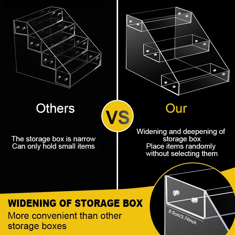 El material acrílico transparente también funciona muy bien con la iluminación. Colóquelo cerca de la luz natural o bajo luces LED de tocador para resaltar la apariencia de sus artículos. Los resultados son visualmente atractivos y crean una sensación similar a la de una boutique en el hogar. Esto lo convierte en una opción inteligente para fotos destinadas a redes sociales, exhibiciones de productos o disfrute personal. El diseño del organizador es atemporal, por lo que sigue siendo útil y elegante incluso cuando cambian las tendencias.