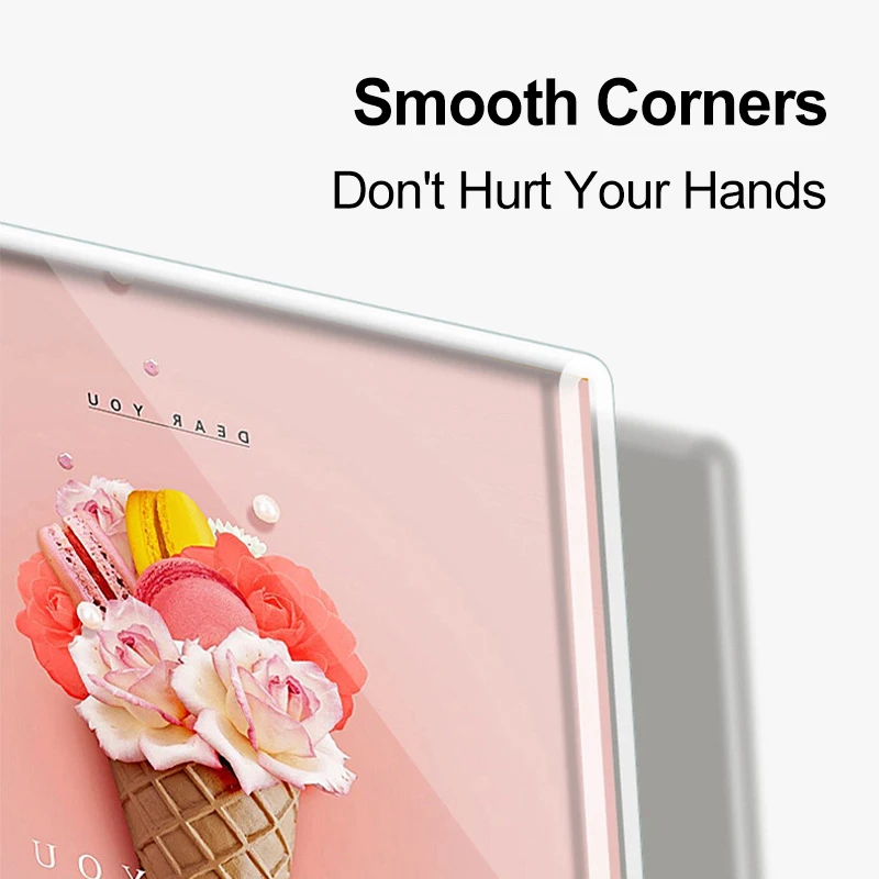 El acrílico es de alta definición y cristalino, por lo que el texto y las imágenes aparecen nítidos y vibrantes. Las esquinas suavemente redondeadas garantizan seguridad y un aspecto refinado, evitando bordes afilados que puedan engancharse o causar daños. Esta atención al detalle otorga al producto una sensación premium que complementa la decoración elegante de bodas o los montajes contemporáneos de eventos. El material es ligero pero resistente, ofreciendo un equilibrio entre portabilidad y estabilidad. Es fácil de trasladar de mesa a mesa o de guardar entre eventos.