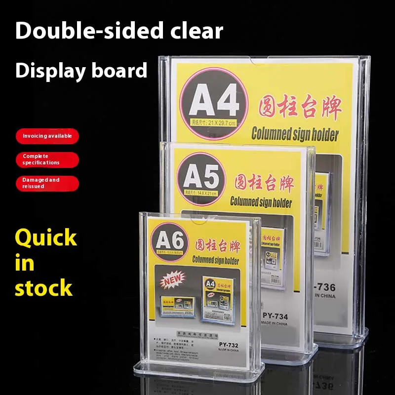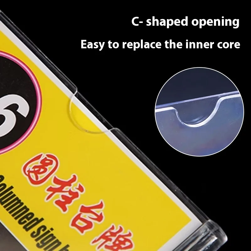 Fabricado con acrílico PS de alta calidad, su superficie es transparente y nítida, lo que hace que el texto e imágenes impresos aparezcan brillantes y fáciles de leer. Su transparencia lo convierte en una opción ideal para menús, listas de precios, programas de eventos o señales indicativas que deben comprenderse rápidamente. El material acrílico resiste mejor los arañazos y golpes que muchos tipos de vidrio o plásticos de menor calidad, lo que mantiene su aspecto impecable durante mucho tiempo. Al ser resistente al agua, pequeños derrames o salpicaduras no dañarán ni el soporte ni los materiales que contenga. Esta característica resulta especialmente útil para las personas que trabajan desde casa y pueden colocar bebidas cerca durante llamadas o mientras realizan sus tareas.