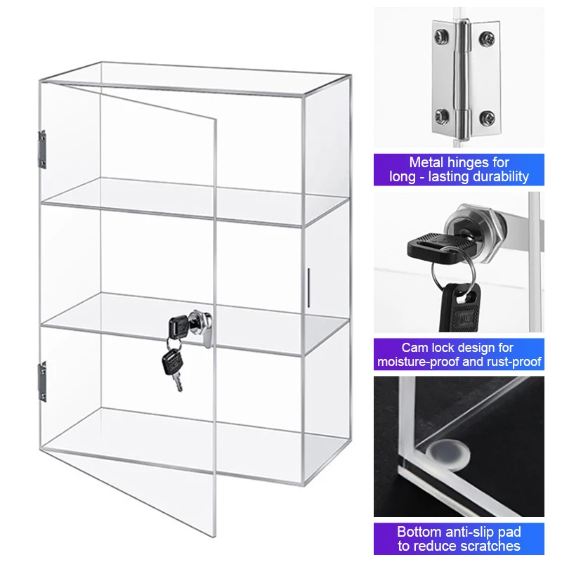 La seguridad también forma parte del diseño. Los paneles de acrílico están pulidos para eliminar bordes rugosos. El mueble dispone de cierre para evitar su apertura accidental. La construcción general mantiene el contenido seguro, al tiempo que permite un acceso fácil cuando lo necesite. Ya sea que esté reorganizando figuras o realizando tareas rutinarias de limpieza del polvo, el acceso sigue siendo cómodo, mientras que el cierre ofrece protección diaria.