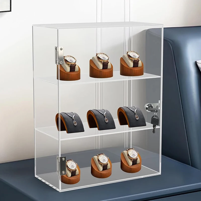 El diseño prioriza la visibilidad y la protección. Los paneles transparentes minimizan los reflejos y mantienen el enfoque en sus muñecas. El cierre asegura el panel frontal y ayuda a proteger su colección frente a accesos accidentales. Al ser ligera, la vitrina también es fácil de reubicar cuando decida renovar su exposición. Puede colocarla en un estante, usarla sobre un escritorio o montar una pared de vitrinas para una presentación más impactante.