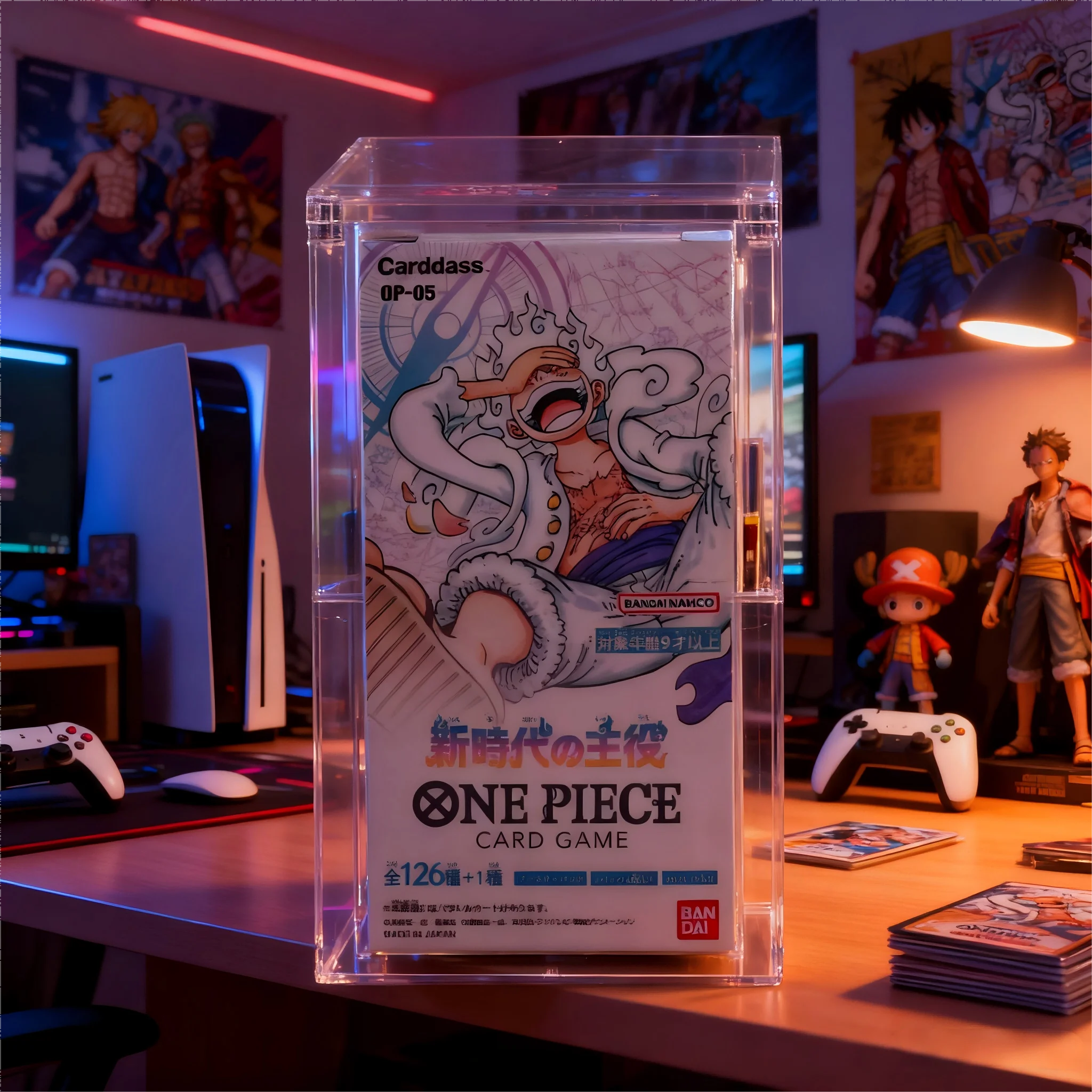 La durabilidad es un punto fuerte de esta caja. El material acrílico resiste los arañazos y mantiene su transparencia. Con el tiempo, sigue siendo transparente, por lo que las imágenes permanecen nítidas y visibles. Los bordes están bien acabados y toda la caja ofrece una sensación sólida al tacto. No se necesitan insertos adicionales de espuma ni soportes complicados. El diseño de la caja es sencillo y fiable, pensado para coleccionistas que buscan una solución segura para exhibir artículos de la serie OP01–OP13.