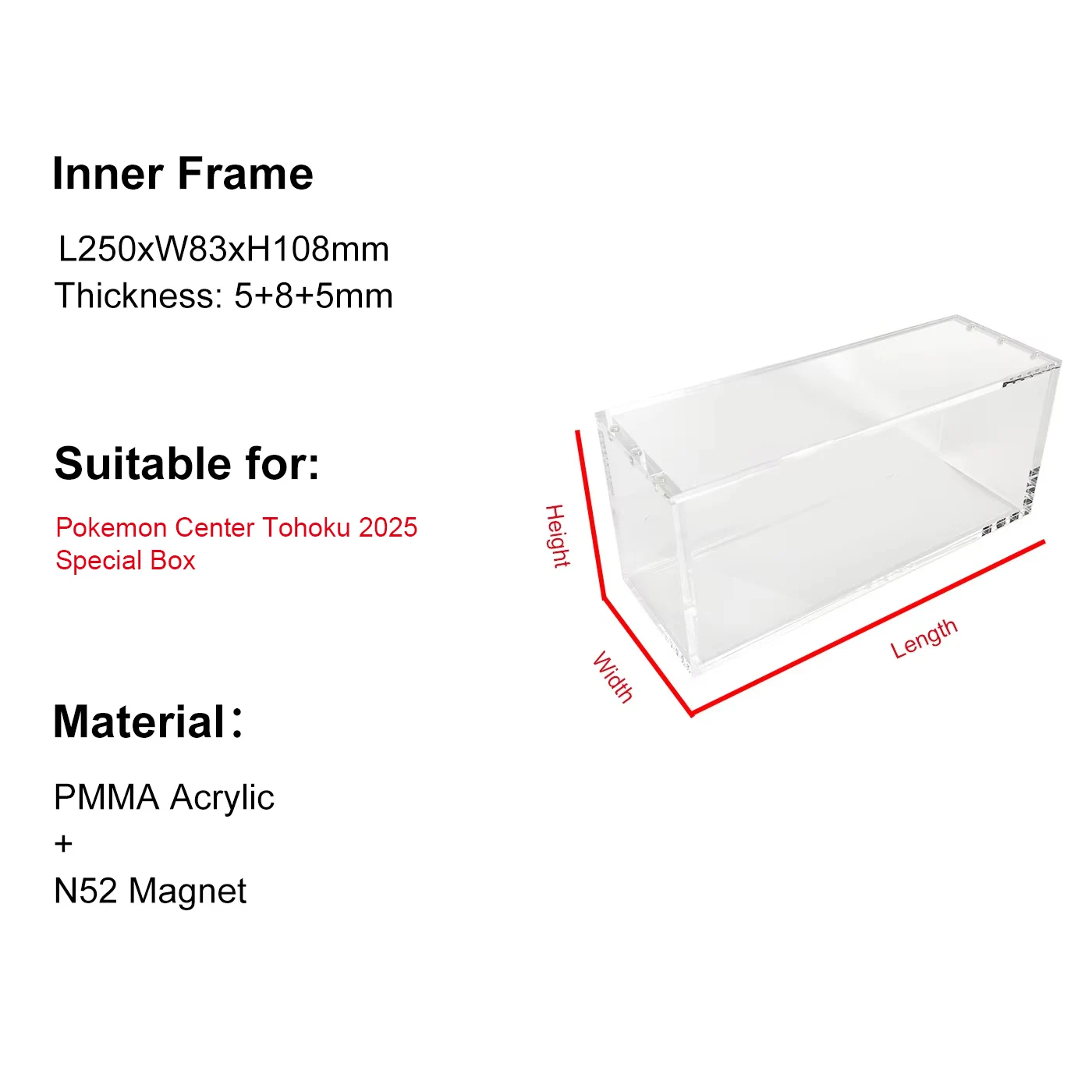 La funda protectora JIN DA es una funda transparente de acrílico con cierre magnético, diseñada específicamente para la caja especial Pokémon PTCG Centro Pokémon Tohoku 2025 y compatible con las cajas regionales de Tohoku, Hiroshima y Fukuoka. Protege, exhibe y almacena la caja con cuidado. Su calidad de fabricación, acabado transparente y sellado magnético seguro la convierten en una opción práctica para coleccionistas que desean mantener sus artículos seguros y en excelentes condiciones.